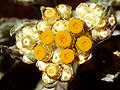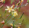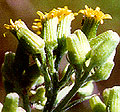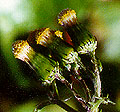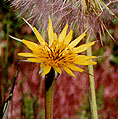 The Asteraceae in our flora are all perennial or annual herbs. They have alternate, opposite or whorled leaves, usually simple but sometimes deeply lobed or dissected, smooth-margined or toothed, and no stipules. The flowers are densely packed into heads that are surrounded by an involucre. The individual flowers are tiny and highly modified. The sepals are modified into a pappus, or plume, that lets the fruits float away on the wind at maturity. There are 5 petals fused into a tube with all lobes approximately symmetrical in the interior of the head (disk flowers), but asymmetrical with one very large lobe ("petal") at the head margin (ray flowers). Sometimes heads have only disk flowers, or only ray flowers, but usually both are present. Within each flower, there are usually 5 stamens with their anthers fused into a ring. Pollen is released into the center of the ring, and the immature style expands and pushes the pollen out like a plunger. The ovary has 2 carpels and is inferior. There are 2 style branches that can be seen when the stigmas become receptive. The fruits are achenes (containing a single seed), usually dispersed by their feathery pappus.
