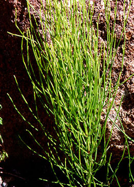COMMON OR FIELD HORSETAIL Plants are dimorphic: sterile stems are evergreen, branched, and grow up to 70 cm tall; fertile stems are brownish to whitish, unbranched and typically grow to 30 cm tall. Equisetum arvense is one of the most widespread plants in the world; it is widespread and common in western Washington, sometimes becoming a garden weed. Equisetum arvense is so tough that it was the first vascular plant to send green shoots up after the Mt. St. Helens eruption. Ancient Romans apparently ate the young shoots of Equisetum arvense like asparagus, used them to make tea, and as a thickening agent.
