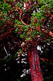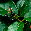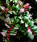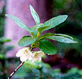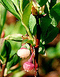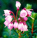 The Ericaceae is an abundant and diverse family in western Washington. One of the reasons they are so abundant here is that members of this family don't have the enzyme required to convert soil nitrate back into ammonia. This means that they have to take up nitrogen as ammonia directly, and so require acidic soils in which the bacteria that convert ammonia to nitrate are relatively scarce. Many Ericaceae are valuable ornamentally (e.g., Rhododendron, Actostaphylos, Gaultheria, Arbutus), and the blueberries and cranberries (Vaccinium) are important as foods.The typical flower of the Ericaceae is small, pendent, and urn-shaped. The sepals and petals are generally fused with 4 or 5 lobes each. The anthers are often inverted, and sometimes have awnlike projections from the back or tip. Generally, the anthers open by terminal pores. The pistil consists of 4-5 fused carpels, with a single style and stigma, ovary superior or inferior. A Gaultheria flower is fairly typical. Rhododendron, as well as most of the herbaceous species, has reverted to distinct petals, but other characteristics of the family remain.