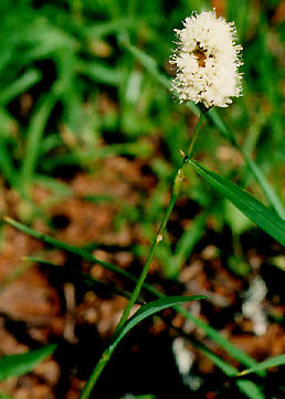 AMERICAN BISTORT American bistort is a perennial herb common in moist to wet subalpine meadows. The terminal, white to pinkish, spike-like inflorescences arise from unbranched jointed stems 20-50 cm tall. The leaves are mostly basal and lance-elliptic with ocreas. The flowers are small and 5-parted. Polygonum is Greek for "many" (poly) "knees" (gonu), and bistortoides is Latin for "twice" (bis) "twisted" (torta) in reference to the jointed stems and twisted rhizomes. |