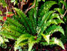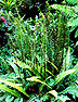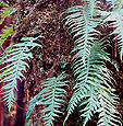 The Polypodiaceae is the family of typical ferns. We have many genera of ferns represented in the western Washington flora; only the local leptosporangiate ferns are described here. All ferns in this family have horizontal rhizomes as the only stems and essentially all of the above-ground growth consists of leaves called fronds. The fronds unroll as they mature from characteristic "fiddleheads." Fronds are generally, but not always, 1, 2, or 3 times pinnately compound. Some ferns have evergreen fronds (Dryopteris, Blechnum, Polypodium, and Polystichum) whereas others are deciduous (Adiantum, Athyrium, and Pteridium). Spores are produced in clusters of sporangia ("sori") on the backs of fronds. The clusters are usually covered by sterile tissue (the "indusium") until the spores are mature. Ferns are distinguished by characteristics of the fronds, the distribution of the sori, and the nature of the indusium. Fertile fronds occasionally differ in form somewhat from sterile fronds (the fronds are "dimorphic" as in Blechnum spicant). The spores develop into free-living, photosynthetic, heart-shaped gametophytes, which can sometimes be found on tip-up mounds in forests where adult ferns are common. Water is required for fertilization.