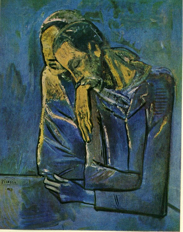 En el año 1901, Picasso se embarcó en su época azul. Esta época se llama la época azul porque la mayoría del color en las pinturas es azul. En la época azul, las pinturas de Picasso muestran la desesperación, la soledad y la tragedia.